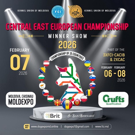 "CENTRAL EAST EUROPEAN CHAMPIONSHIP" FEBRUARY 6-8, 2026 • MOLDOVA, CHISINAU (MOLDEXPO) 3xFCI-CACIB & CRUFTS QUALIFICATION & 2xCAC-MDA |